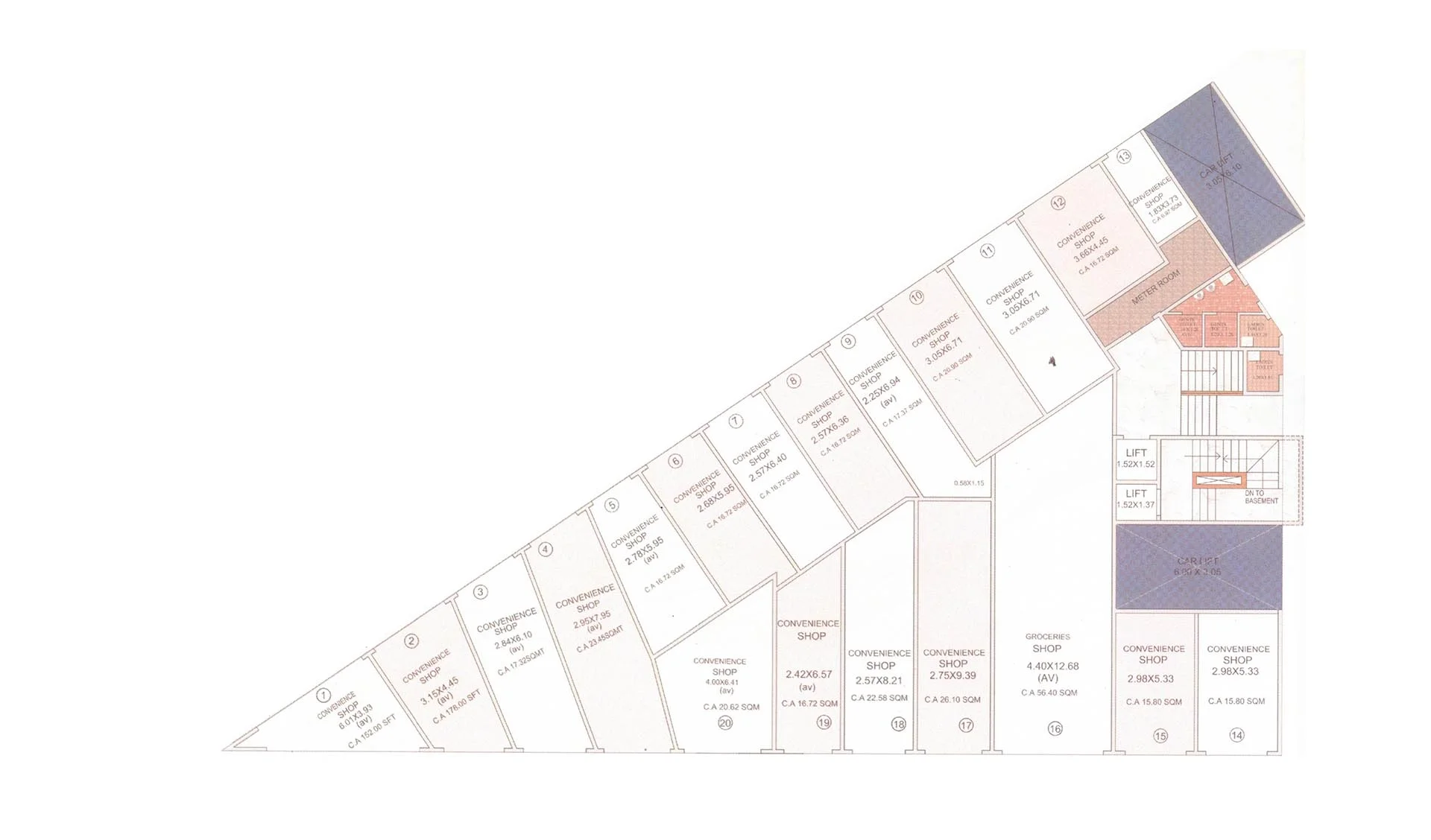 High Safety Concern with provision of 18 gauge MS strong rolling Shutter for all shops.