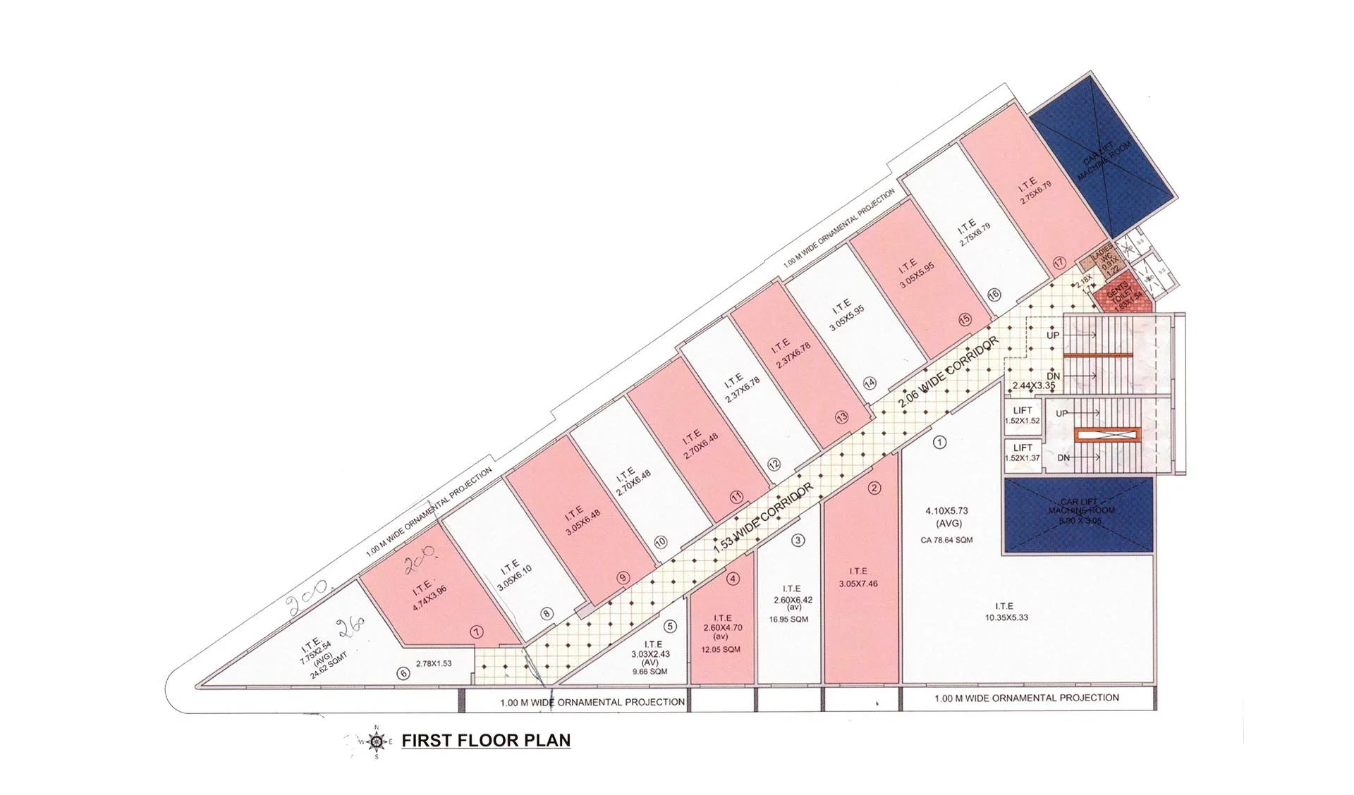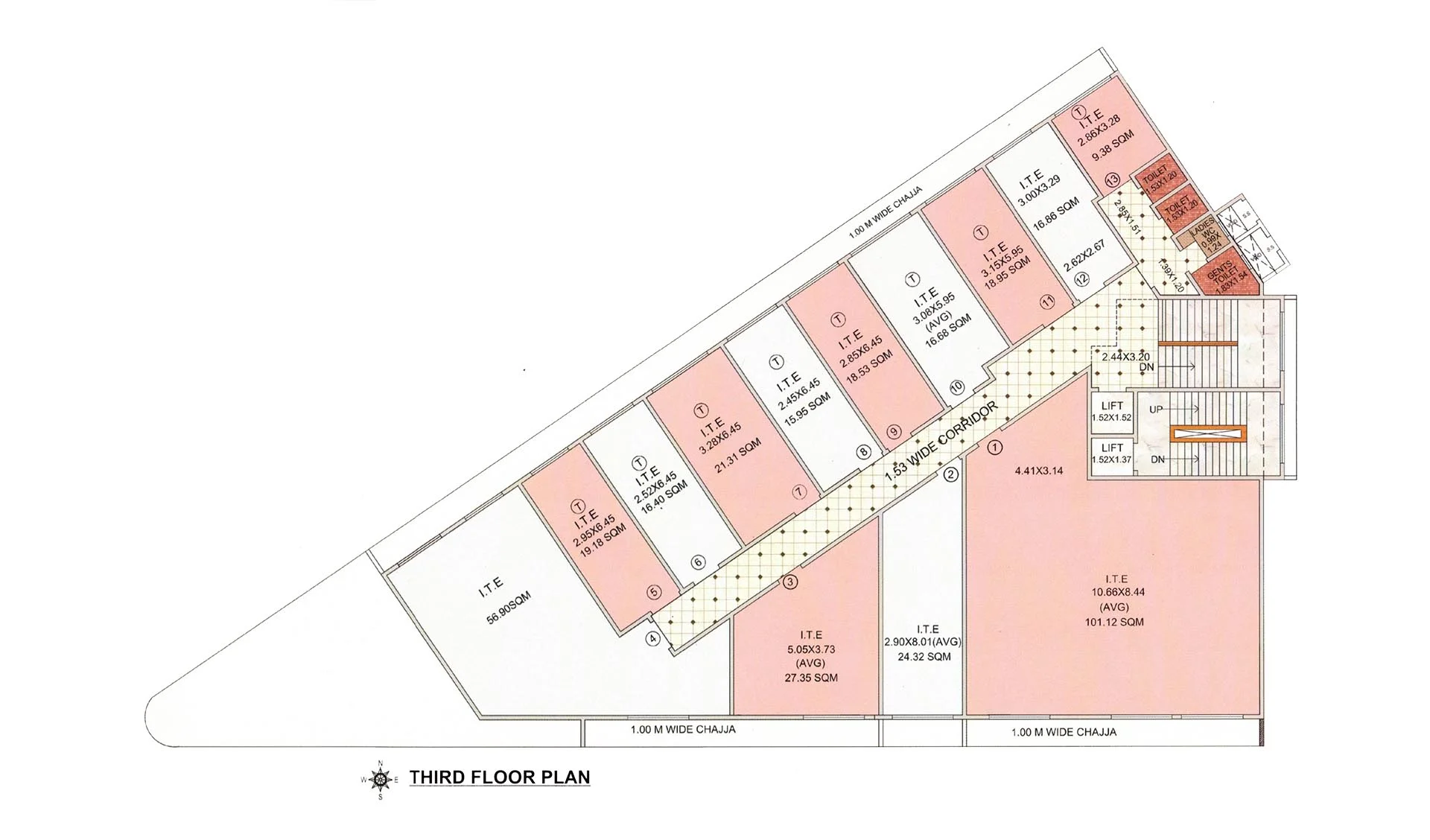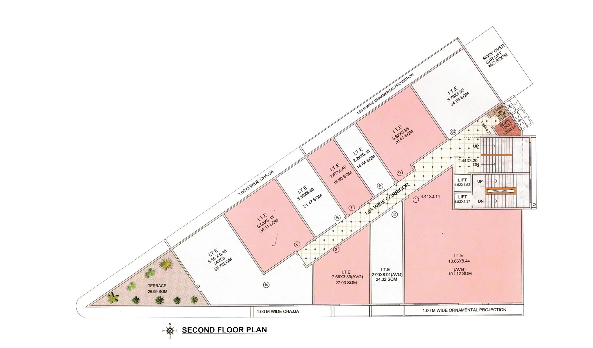 All Offices with the clear Height of 14 feet from Finished Floor Level.